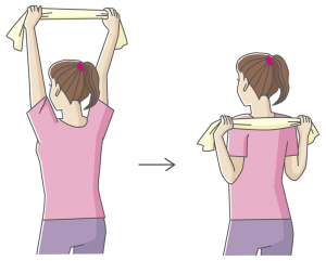 持ってない方は、両手でタオルを持って背中側に回しても、似たような効果を得られるかも。