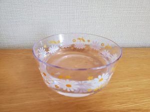 といった情報が見られたので、陶器製の水飲み用食器や自動給水器を買ったほうがよいのかも、と思ったのですが、結局、さしあたりセリアの割れない透明な食器を用意しておくことにしました。↓